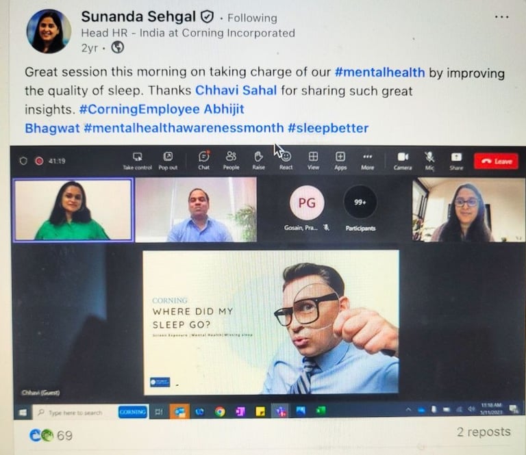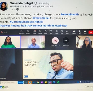 Webinar on role of sleep in mental health management and burnout prevention with Corning India